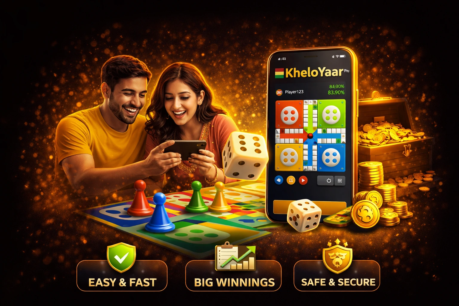 With Kheloyar, you don’t just play — you compete, strategise, and celebrate every smart move. The platform combines the charm of traditional Ludo with the convenience of modern online gaming, giving you the best of both worlds.